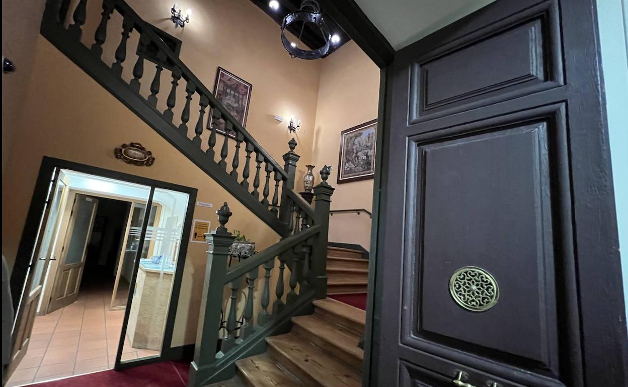 La puerta de acceso es adintelada, «aunque se puede apreciar, por la forma de sus dovelas, que primitivamente fue de medio punto», explica el arquitecto Daniel Villalobos. Sobre el dintel del balcón central está tallado en piedra un medallón con un retrato masculino en su interior –probablemente del capitán Andrés de Herrera–, entre una decoración vegetal abrazada por pequeños ángeles y bajo una bandeja en la que se depositan tres granadas (símbolo de amor, fertilidad y prosperidad). La forma y la situación del zaguán están dispuestos para que se aprecie el patio interior. Desde el zaguán se accede a las bodegas situadas en el semisótano (hoy sala de estar de la residencia universitaria). Los arcos de las dos galerías del patio están sostenidos por columnas lisas de piedra y sus capiteles tienen tallas vegetales. Las enjutas del patio, de traza cuadrada – faltando la del lado norte, como es habitual–, están decoradas con medallones de retratos. En la galería sur está la escalera de dos tramos, que se mantiene intacta; igual que el artesonado y varios de los techos pintados de las estancias de esta noble casa.