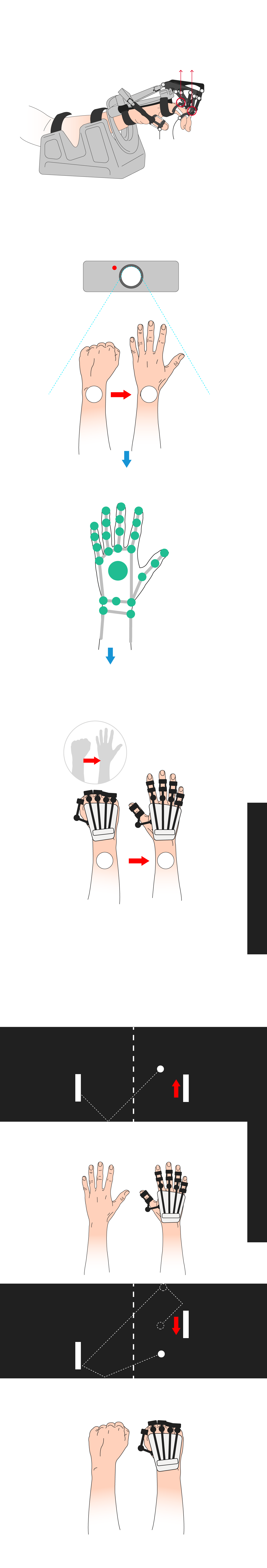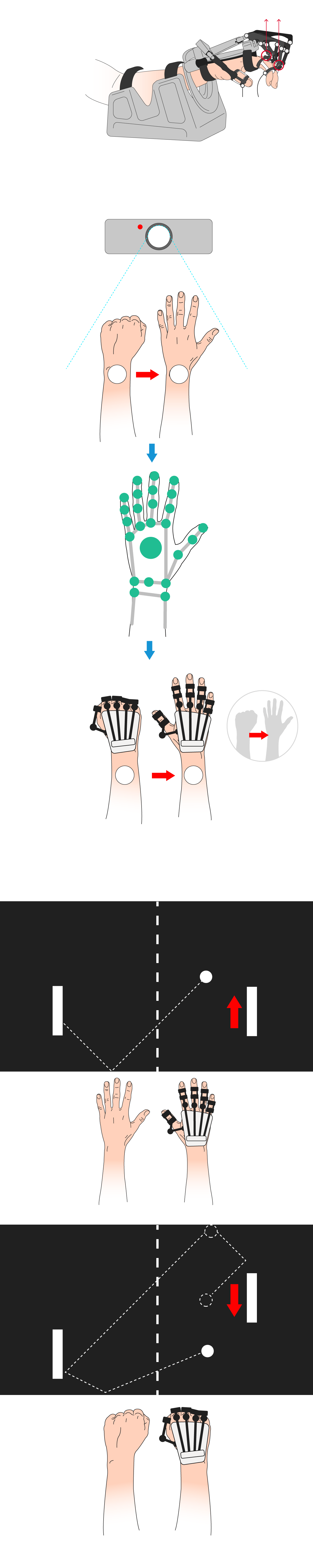 Estas terapias se realizan utilizando un sistema de visión artificial que capta los movimientos de la mano sana del paciente mediante un sistema de visión artificial, y reproducen esos movimientos en la mano afectada por la discapacidad, en la que el paciente tiene colocado el robot de rehabilitación.