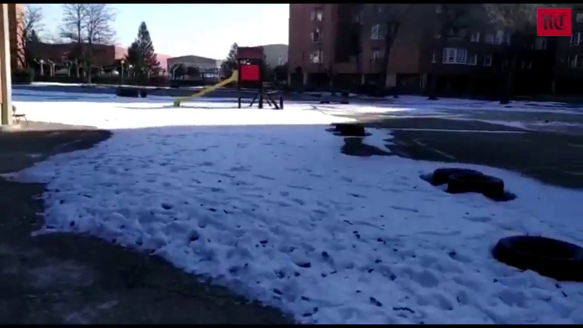 Un grupo de padres retiran el hielo del patio del colegio Vicente Aleixandre de Valladolid