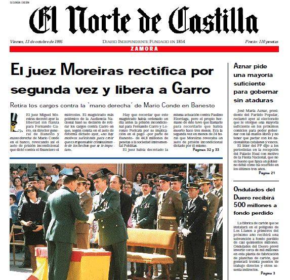 El martes 13 de octubre de hace ya 25 años, El Norte de Castilla abría sus páginas anunciando la retirada de cargos y la libertad de la mano derecha de Mario Conde en Banesto, Fernando Garro, por parte del juez Moreiras. En plena polémica del caso, el decano de la prensa recordaba que «este magistrado había ordenado un día antes la prisión incondicional para Fernando Garro y Lorenzo Pericats por su implicación en el pago -por parte de Banesto- de 44,8 millones de pesetas a la sociedad instrumental Publitax» y que este mismo juez, uno de los más polémicos de la Audiencia Nacional, «había decretado la misma actuación contra Paulino Elorriaga, pero el propio hermano de éste tuvo que llamarle para recordarle que había muerto hace tres meses».
