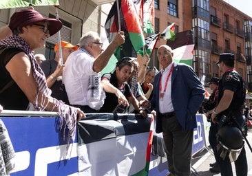 El momento ha llegado durante el debate de la tercera moción de la mañana, en el Pleno Ordinario de septiembre del Ayuntamiento de Valladolid. Dentro ... del debate de una propuesta del grupo municipal Vox, donde la formación llevaba un texto con el objetivo de condenar los «actos de boicot» contra la Vuelta Ciclista a España, que a su paso hace unas semanas por la capital terminó con dos personas detenidas. Ha sido ahí cuando varias personas han sacado desde el palco de asistentes varias banderas de Palestina en el salón de plenos. La primera intervención de los portavoces de los cuatro partidos con representación en el Consistorio ha terminado sin ninguna réplica desde las gradas, pero no ha terminado así. Algunos apuntes de los discursos, como el de Rocío Anguita, quien ha reiterado su condena al ataque de Hamás en octubre de 2023 y ha defendido que las protestas durante la etapa que se celebró en Valladolid fueron una «rebeldía pacífica para condenar una situación insostenible».