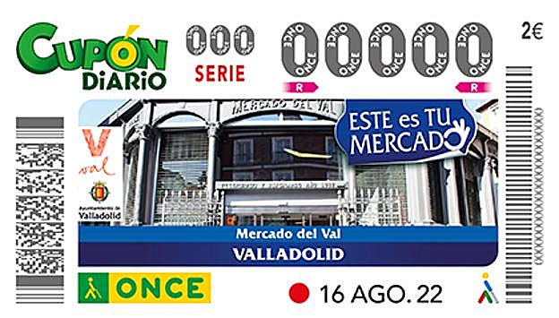 El Mercado del Val de Valladolid protagonizará cinco millones de cupones del sorteo de este martes 16 de agosto, un cupón que pertenece a la serie 'Tú eres importante', que difundirá por toda España este edificio, referencia en productos locales de calidad.