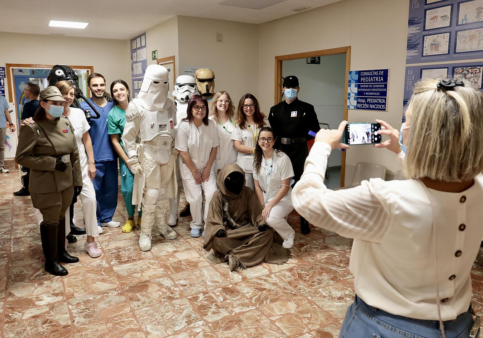 Los troopers llevaron sonrisas a la planta de hospitalización, la de psiquiatría infanto-juvenil, la UCI pediátrica y también a las urgencias infantiles y se hicieron fotos con todo el que se lo pedía. «Que la fuerza os acompañe... y que no os multen por aparcar la nave en urgencias», les despedía un celador. La misión estaba cumplida. El Imperio había conquistado, una vez más, el corazón de los niños del Clínico.