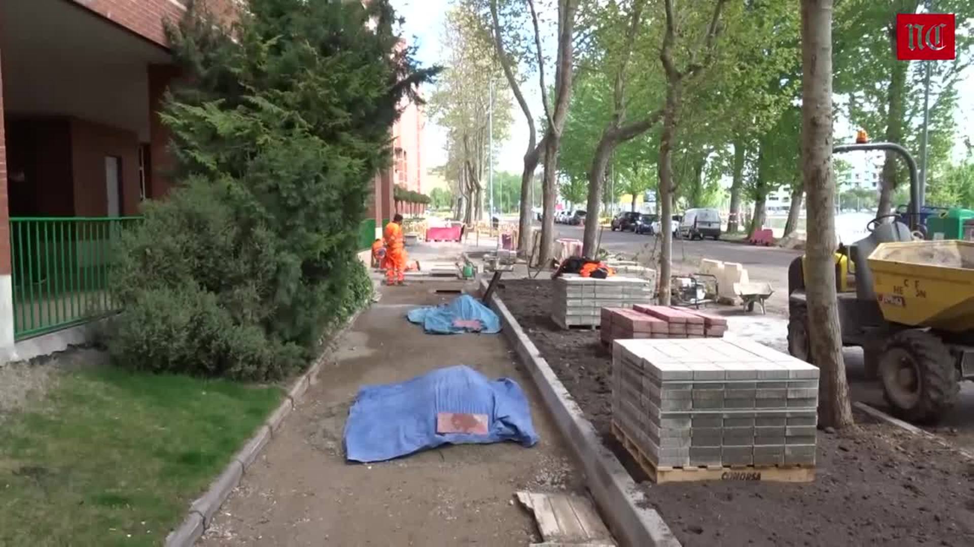 Obras de reparación de los daños causados por las raíces en el paseo del Obregón de Valladolid