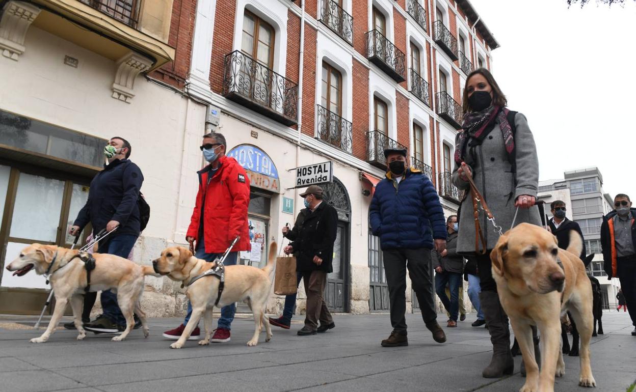 La Organización Nacional de Ciegos Españoles (ONCE) ha salido a la calle en Valladolid para honrar a la patrona de las personas ciegas, Santa Lucía. Lo ha hecho con una marcha que recorrió varias calles del centro de la ciudad y cuyo objetivo era reivindicar el trabajo y la labor desempeñada por los perros guía, así como los derechos de los usuarios. La comitiva, en la que participaron en torno a una treintena de usuarios acompañados por sus canes, partió desde la sede de la entidad hasta la Plaza Mayor. Asimismo, los asistentes pusieron en valor la Ley de acceso al entorno de las personas usuarias de perro de asistencia, aprobada en Castilla y León en 2019.