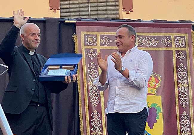 El alcalde, Gonzalo Domínguez, entregó al pregonero una placa en agradecimiento a sus 20 años de «dedicación, cariño y por haber restaurando las campanas que nos unen», recordando una de las primeras iniciativas del sacerdote al llegar a la localidad. El alcalde ensalzó el buen hacer de párroco, «siempre muy cercano a la gente». Su nuevo destino será el de capellán del Santuario Nacional de la Gran Promesa en Valladolid, porque «un sacerdote debe de obedecer a su obispo, y Dios dispone que comience otra etapa en mi vida, posiblemente algo más tranquila, me imagino que será porque el señor obispo me ve mayor y achacoso, o un peligro al volante».