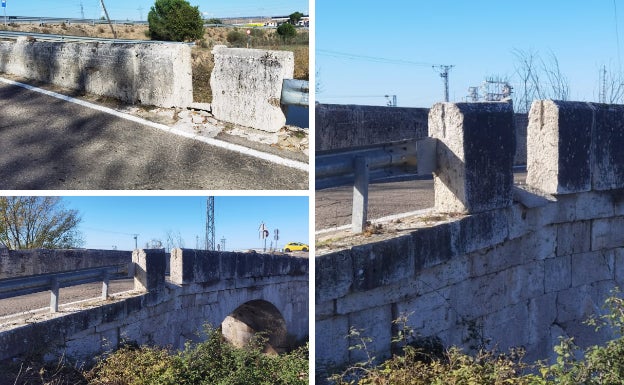 El puente del Canal de Castilla en Cabezón pierde una piedra del pretil