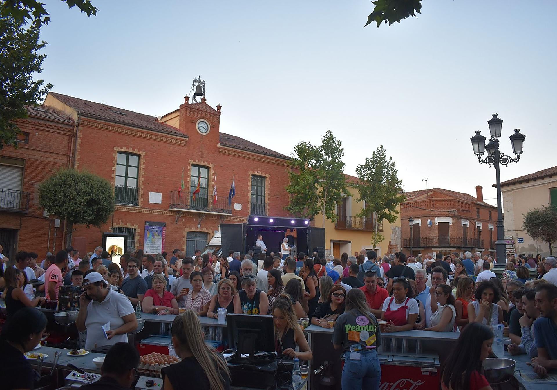 El plato estrella del día fue el pincho de feria, compuesto por un contundente y sabroso plato de morcilla con patatas y huevo frito, que se sirvió en una caseta instalada en la Plaza Mayor. Cientos de personas –entre vecinos y visitantes– se acercaron a degustarlo, acompañándolo, como no podía ser de otra forma, con una copa de vino de la Denominación de Origen Cigales.