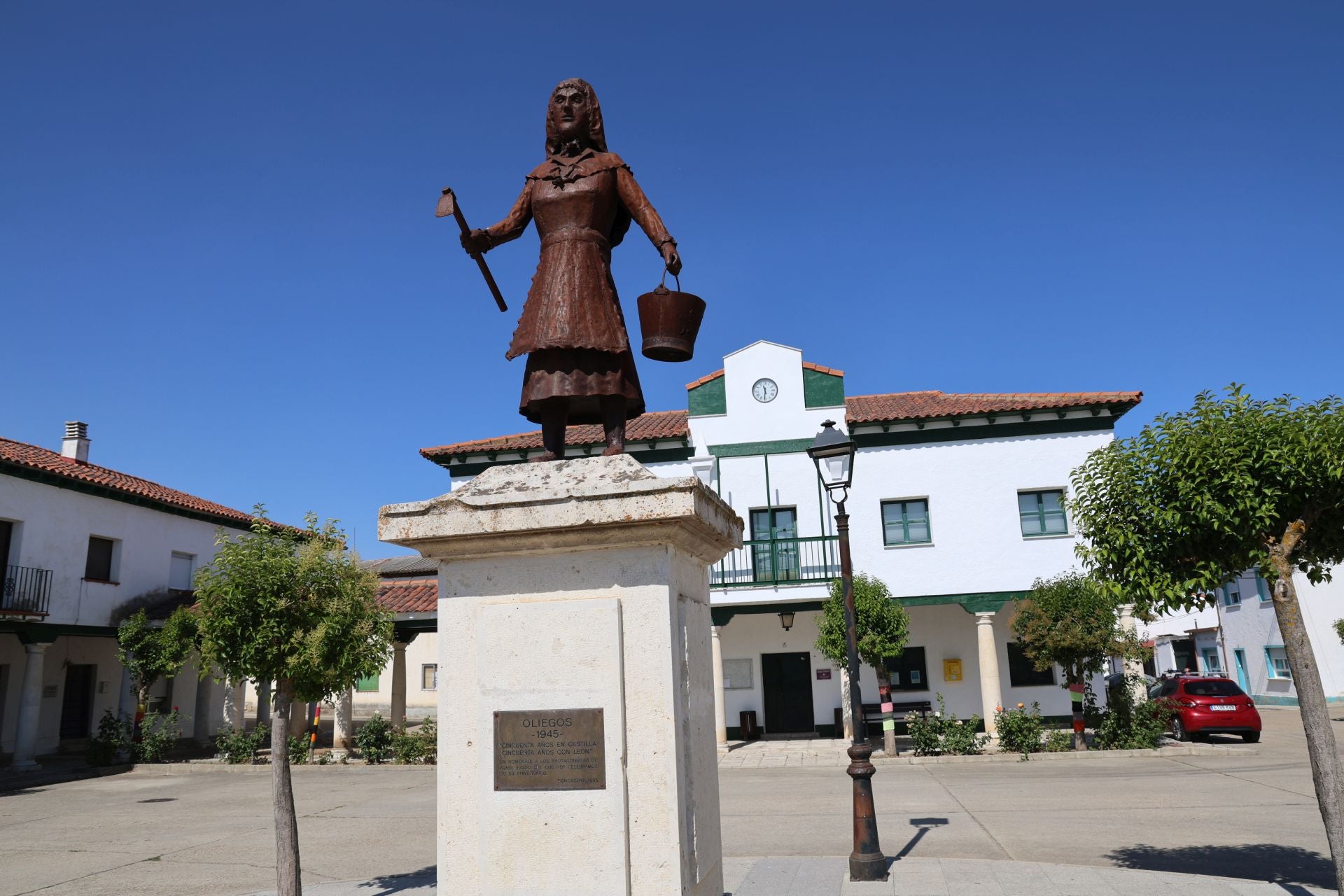 Ochenta años después, el corazón de Foncastín sigue latiendo también en Oliegos. Aunque hoy apenas queden 40 personas vivas de las 175 que llegaron al pueblo, la memoria sigue tan presente como entonces. Los más mayores son Elías Suárez (79), Esmeralda Cabezas (83), Alfredo Vallinas (84), Dolores Magaz (86), José Antonio Suárez (88), Eloína Magaz (89) y Elvinda Magaz (93). «Mis padres nunca se sintieron de aquí», cuenta Elías Suárez. «Mi madre decía que aquello era mucho mejor. El clima, la gente, el paisaje... esto era como otro mundo». Su vecina, Elvinda, la matriarca de todos ellos, también tiene recuerdos muy nítidos. «Yo tenía 13 años cuando llegamos. Entonces no nos dábamos cuenta de todo lo que dejábamos atrás y de la pena que tenían nuestros padres. Con los años fuimos conscientes de que habíamos perdido nuestro pueblo», dice con calma. «Mi mayor queja es que dejaron a nuestros antepasados enterrados bajo el agua. No hay derecho a eso. Todos tenemos allí a nuestra gente y nadie hace nada por sacarles. Cuando el pantano esta muy bajo, se puede visitar el cementerio, pero está todo perdido», apostilla Alfredo Vallinas. «Fue muy duro acostumbrarse a la nueva vida aquí. Las mujeres trabajaron muchísimo, por eso, cuando fui alcalde, quise dedicarles un monumento», indica José Antonio Suárez, señalando una estatua que preside la plaza. Él fue regidor de Foncastín desde 1991 hasta 2003.