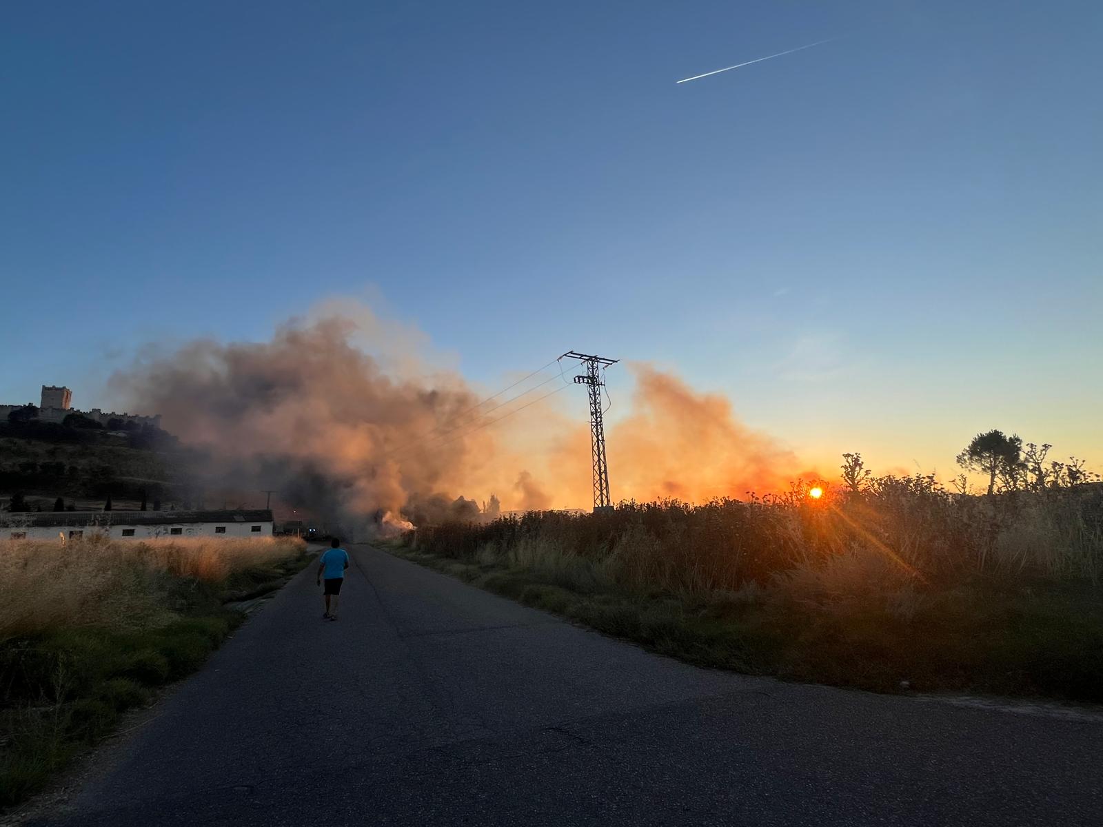 El fuego de matorral a las afueras de Peñafiel crea una gran columna de humoEl incendio se inició a las 20:23 en una zona entre un polígono de La Laguna y las instalaciones de bodegas Protos