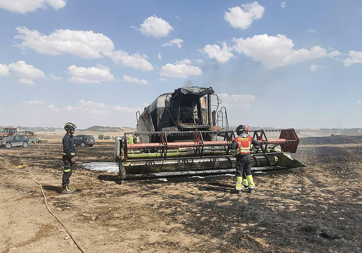 Según declaraciones del propietario de la máquina incendiada, un agricultor de Adalia, no se encontraba cosechando en el momento de los hechos. «Venía del pueblo, de comer. Había dejado la máquina en el campo y la estaba recogiendo para llevarla a casa. De hecho, el fuego no se ha originado en el rodamiento, sino en el motor. Lo hemos intentado apagar con el extintor, pero no ha sido posible», señaló.