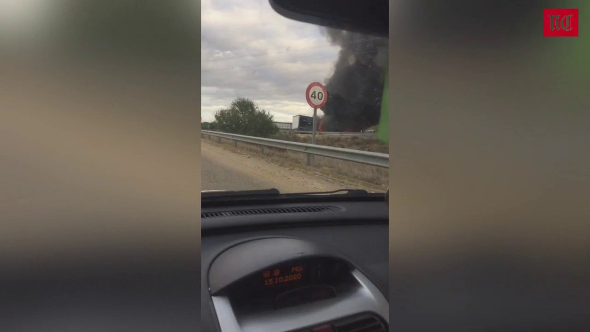 Un herido al chocar e incendiarse dos camiones en la provincia de Valladolid
