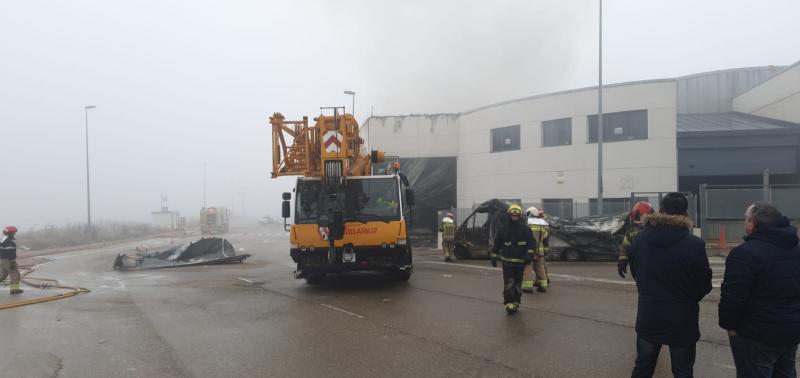 Pasadas las 20 horas de este lunes un retén de bomberos continuaba junto a la nave, con dos vehículos autobombas para intentar que la combustión lenta no llegase hasta otra nave contigua que almacena material de construcción.