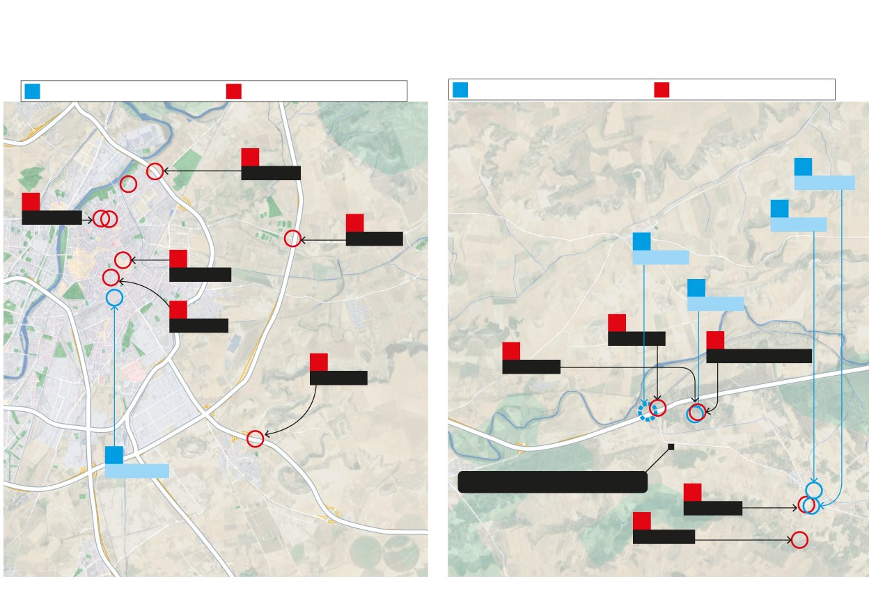 El gráfico muestra las localizaciones de los teléfonos móviles de Esther López y Óscar S. a partir de los datos obtenidos de la triangulación