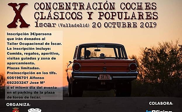 Los amantes de los coches clásicos y populares tienen una cita este domingo en Íscar con la celebración de la décima edición de la concentración. La inscripción cuesta tres euros, que irán donados al taller ocupacional de la localidad vallisoletana. La inscripción incluye comida, aperitivo, regalos, visita guiada y zona de aparcamiento.