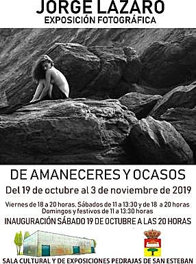 'De amaneceres y ocasos', la obra de Jorge Lázaro, se expone desde este sábado y hasta el próximo 3 de noviembre en la sala cultural y de exposiciones de Pedrajas de San Esteban. La inauguración tendrá lugar este sábado, a las 20:00 horas, y el domingo podrá visitarse de 11:00 a 13:30 horas.