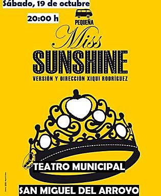 El teatro municipal de San Miguel del Arroyo acoge este sábado, a partir de las 20:00 horas, la representación de 'Pequeña Miss Sunshine' una versinada y dirigida por Xiqui Rodríguez.