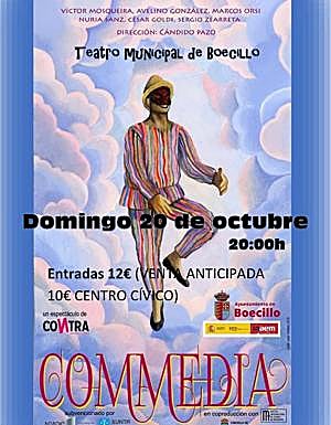 El teatro municipal de Boecillo acoge este domingo, a las 20:00 horas, la representación de 'Commedia', cuyo precio de acceso es de doce euros.