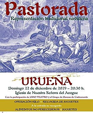 La tradicional representación navideña de Urueña, la Pastorada, tendrá lugar este domingo a las 20:30 horas en la iglesia de Nuestra Señora del Azogue. Contará con la participación de Jano Teatro y del grupo de danzas de Castromonte.