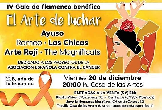 El flamenco será el gran protagonista este viernes en Laguna de Duero con la celebración de la IV Gala benéfica de flamenco. Bajo el título 'El arte de luchar', tendrá lugar a las 20:00 horas en la Casa de las Artes. Las entradas pueden adquirirse por un precio de cinco euros y los beneficios obtenidos irán destinados a la Asociación Española Contra el Cáncer (AECC).