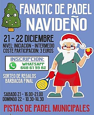Los amantes del pádel tienen una cita este fin de semana en Viana de Cega con la celebración del fanatic de pádel navideño. El sábado, el horario esde 16:00 a 21:00 horas y el domingo, de 10:30 a 14:30 horas. Será en las pistas de pádel municipales. El coste de participación es de tres euros.