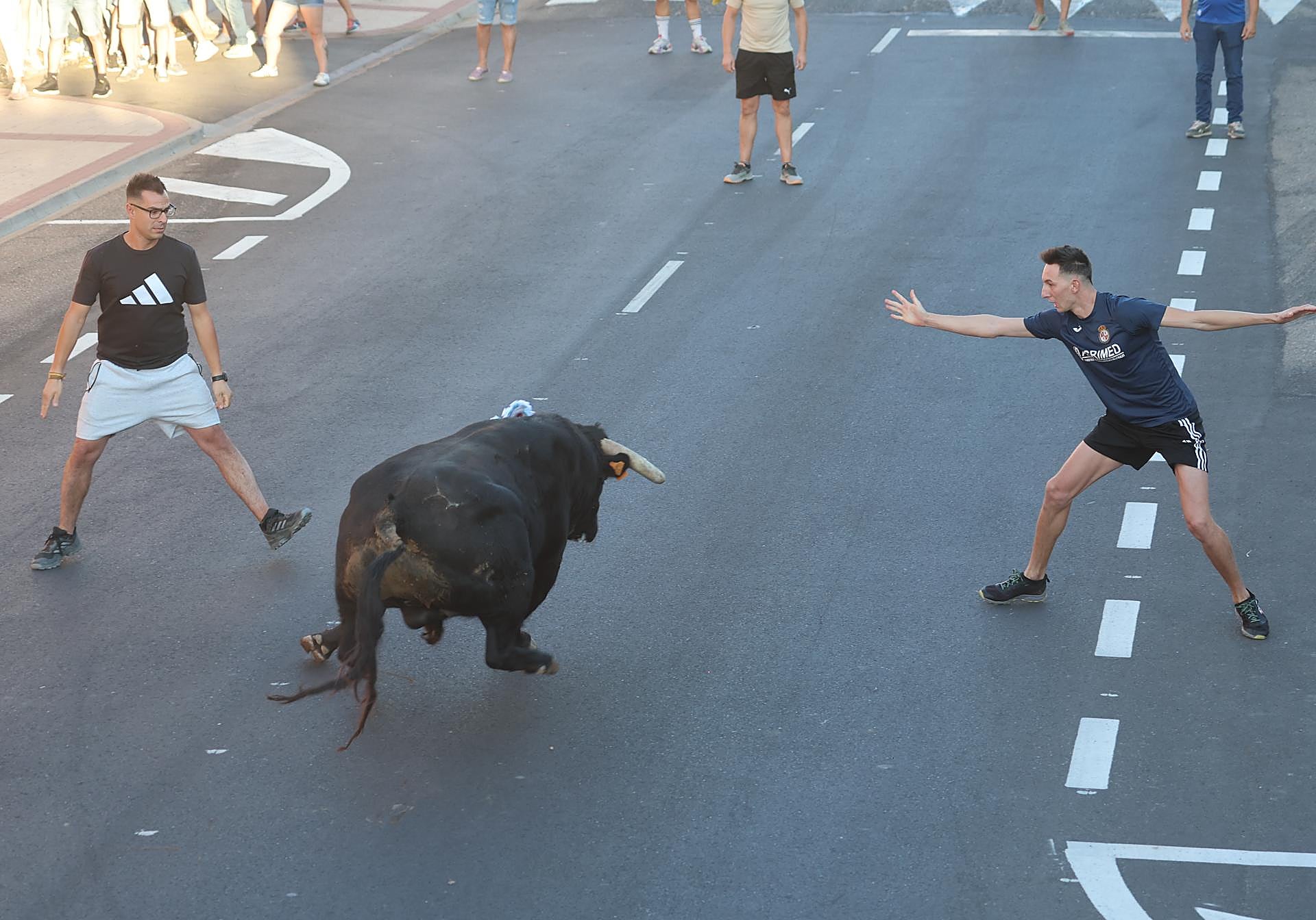 Pasados unos minutos se procedió a la suelta de una vaca también desde el cajón, una colorada que tuvo durante mucho tiempo entretenidos a los aficionados que estaban allí en la salida, con muchos quiebros y cites, para después de 15 minutos coger la calle en dirección a la plaza.