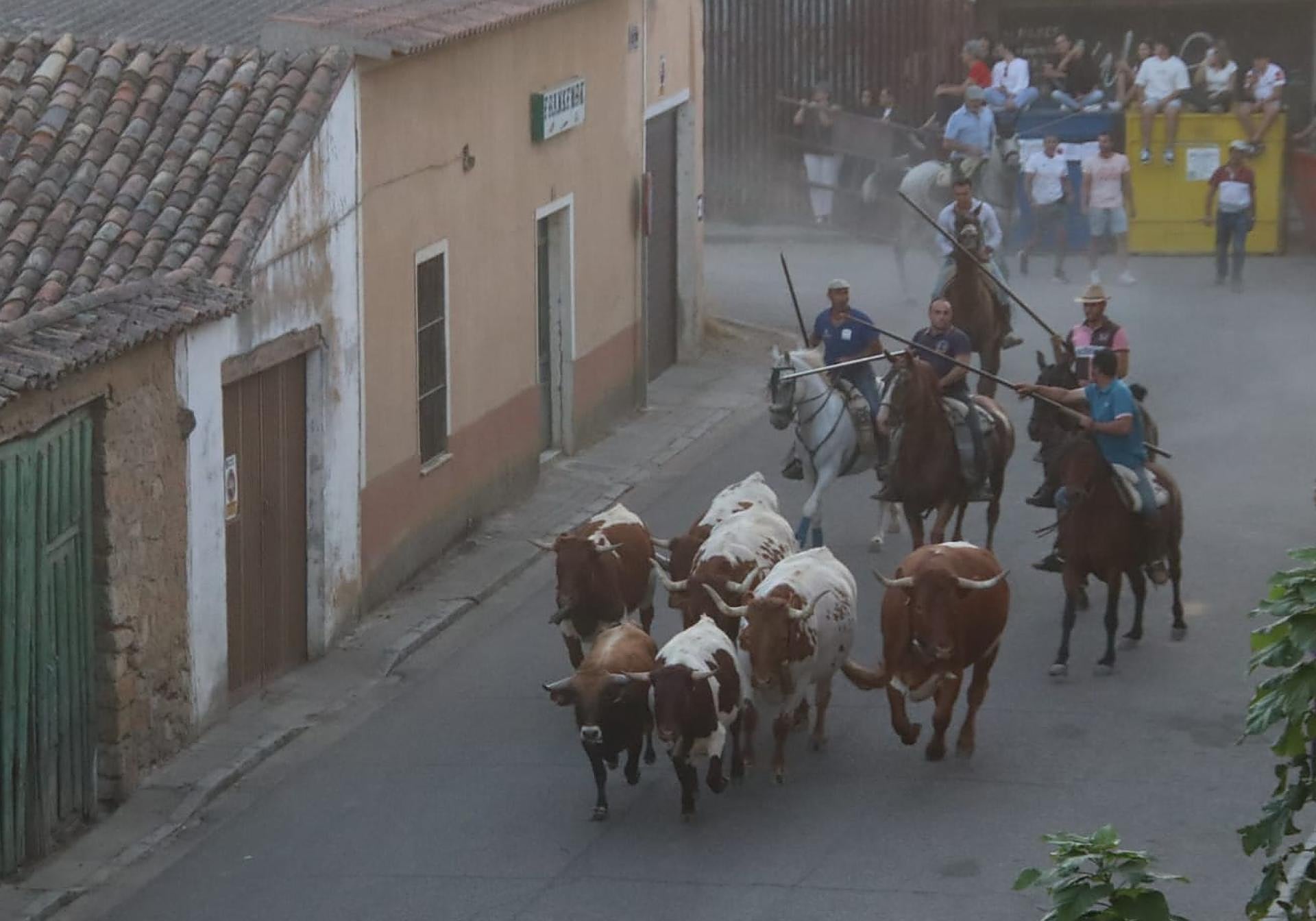 Con el otro se intentó con éxito el que fuera conducido con los bueyes hasta el recorrido urbano flanqueado por las talanqueras. De esta forma, el novillo y los bueyes, ya sin los caballistas, entraron por las cercanías del barrio de los Molinos al recorrido urbano en la larga calle Castilviejo, teniendo lugar el encierro con algunos corredores hasta la plaza de toros. El festejo transcurrió sin ningún incidente. Una vez más, cientos de personas siguieron el festejo de distintos vehículos. La larga jornada festiva llegaba a su fin en la plaza de toros con el concierto flamenco de Canelita.
