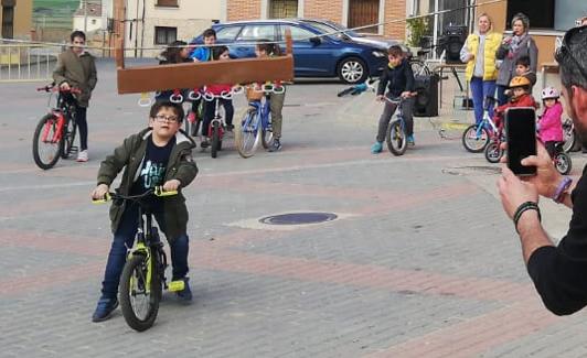 En Mota del Marqués, hace años que se perdió la costumbre de celebrar las cintas a caballo. En su lugar, los más pequeños, desde el 2018, hacen una recreación de estas justas festivas en bicicleta. Este martes, numerosos motanos se congregaron en la plaza mayor, para ver como las nuevas generaciones mostraban su habilidad al sacar las cintas del cajón. La única diferencia, que cambiaron el estribo por los pedales, pero se lo pasaron en grande.