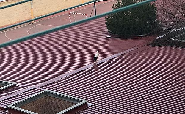 Una cigüeña en un tejado de Valladolid pone en jaque a vecinos y bomberos