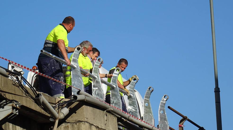El paso elevado suma así su enésimo parche a la espera de su demolición y luce ahora un tramo de veinte metros de bionda reluciente y notablemente más alta que el resto en la parte superior del carril derecho que discurre hacia el centro. Otro tramo, al final del carril izquierdo de salida hacia el paseo del Arco de Ladrillo, luce una bionda idéntica, que fue sustituida años atrás.
