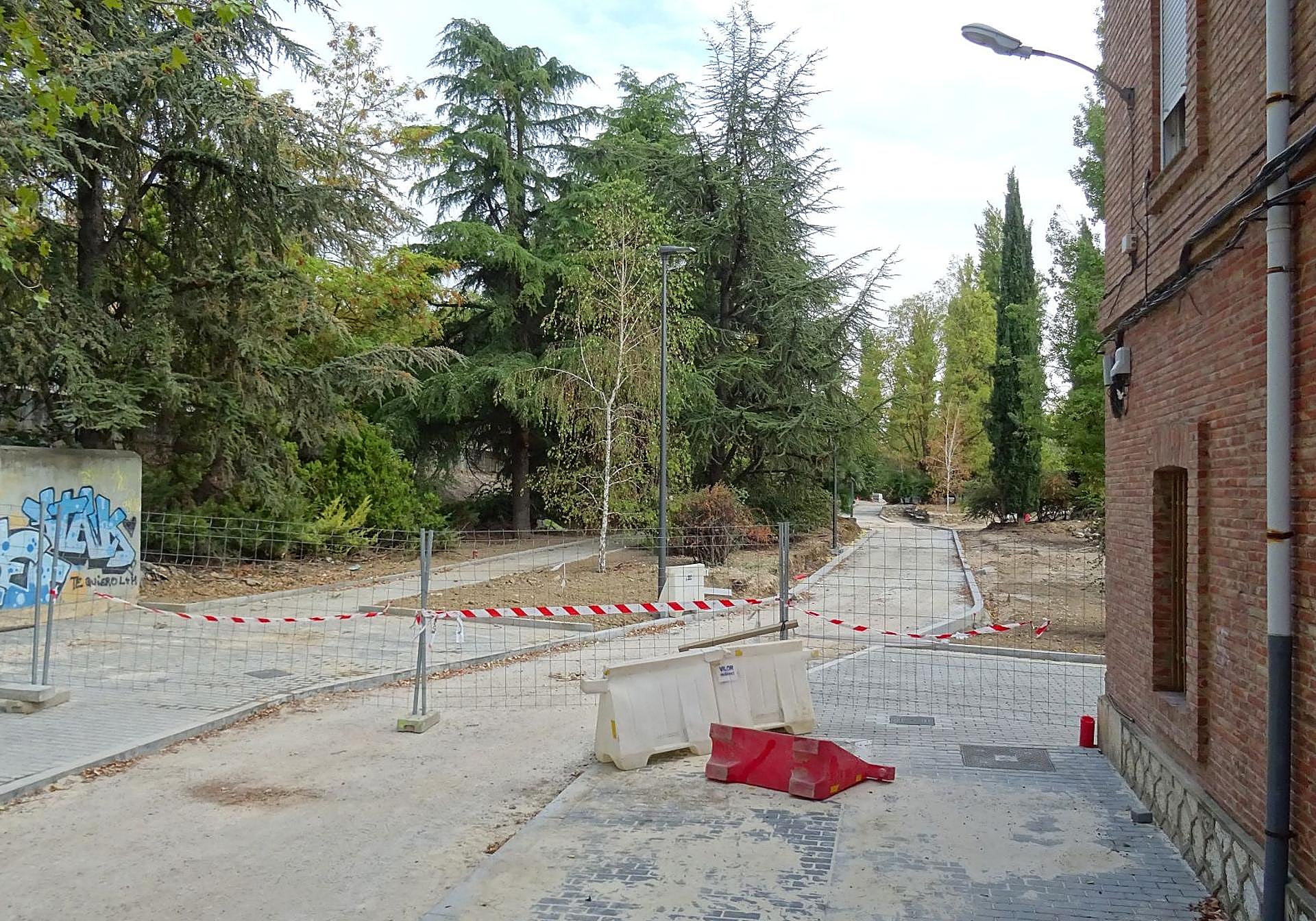 La parte abierta muestra aceras adoquinadas, una hilera de aparcamientos y una calzada que unirá la avenida de Gijón y la carretera de Fuensaldaña