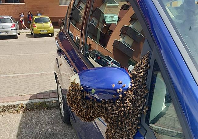 Efectivos de los Bomberos de Valladolid han retirado este martes un enjambre de abejas del retrovisor de un coche que estaba aparcado en la calle Eras, junto a la depuradora de aguas, en el barrio de Huerta del Rey. Fuentes del cuerpo municipal han recibido el aviso a las 14:57 horas. Un hombre ha llamado alertando de que los insectos habían tomado este elemento del vehículo y no podía hacer uso de él.