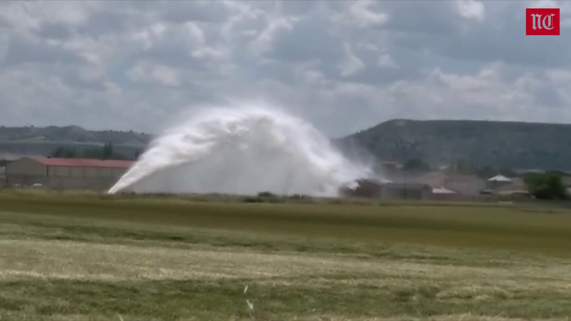 Rotura de la tubería general canal del Riaza en Valbuena de Duero