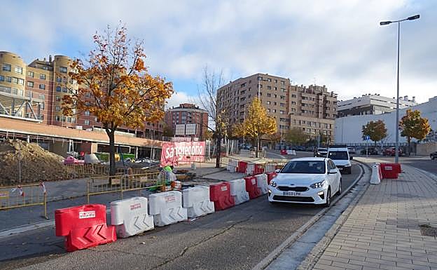 Las obras en la calzada mantienen un carril cortado lo que ha provocado circulación lenta desde el Colegio de San Agustín hasta la entrada a Laguna de Duero en la hora punta