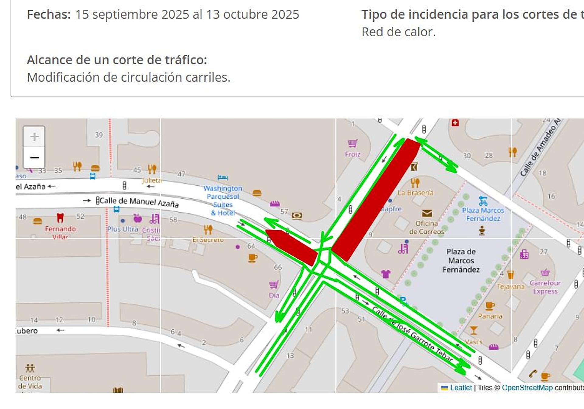 Desde hoy mismo, y durante las próximas semanas, los conductores recuperan, al menos, parcialmente la intersección de Ciudad de la Habana con Manuel Azaña y José Garrote Tebar, que permanecía cerrada desde mediados de julio, pero pierden el tramo siguiente de Ciudad de la Habana, el que discurre entre José Garrote Tebar y Amadeo Arias, cuyos dos carriles permanecerán cortados al tráfico en adelante del lado de los números impares.