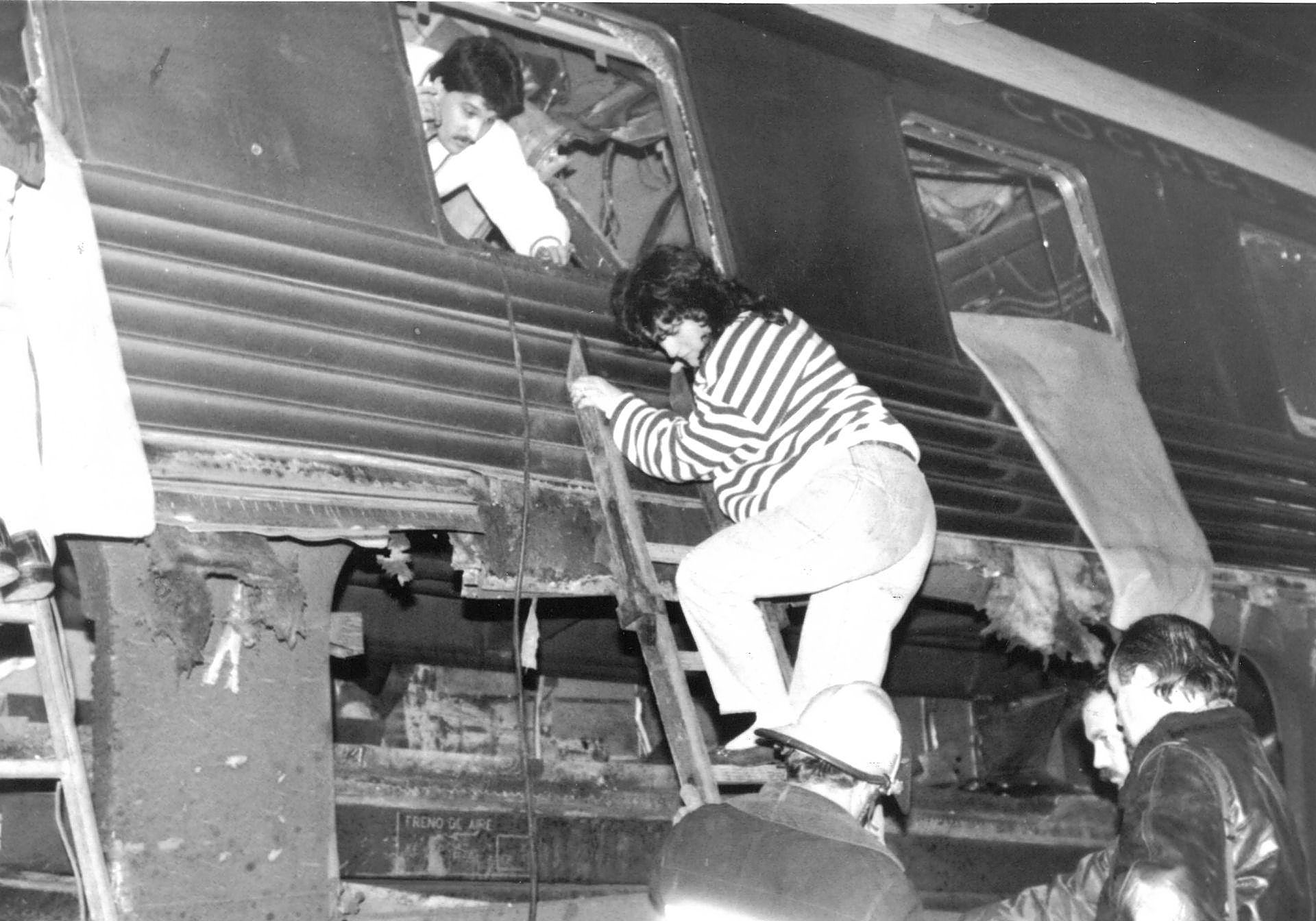 ↓ Carmen Pastor Azurmendi entró ese día a trabajar a las seis menos diez de la mañana y asegura que lo que se encontró en la estación fue «dantesco». «Ha sido el accidente más grave que he vivido durante los 41 años que he trabajado en Renfe». Se jubiló en 2021. «Primero pensé que era un incendio», explica Carmen, una de las primeras mujeres en entrar en la empresa pública. «Yo era factor. Lo mismo estaba en taquilla, que en estadística para tomar nota de los vagones, que para facturar equipajes... Ese día, me tenía que ocupar de la paquetería y, a pesar de la gravedad del accidente, estuvimos en nuestro puesto de trabajo atendiendo a los clientes». Pero fue «un día raro, un día extraño», reconoce. «Me invitaron a subir a la parte a las oficinas que estaban encima de la cafetería desde donde se veía todo, pero no quise», explica al otro lado del teléfono. «Yo desgracias no quiero ver». Y aquella era de las grandes.