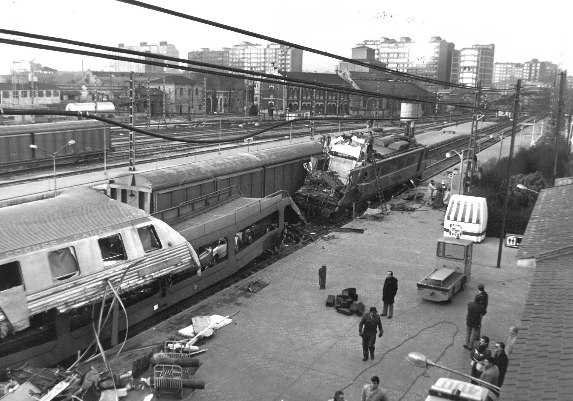 ↓ Han pasado casi cuatro décadas, 37 años para ser exactos, de un accidente que conmocionó Valladolid y a toda España. Ocho viajeros, entre ellos una niña de 14 años, perdieron la vida y una treintena resultaron heridas en la Estación del Campo Grande en la madrugada del 3 de marzo al chocar dos expresos que, procedentes de Madrid, se dirigían a Santander y Bilbao, respectivamente. El 'Cantabria', que estaba estacionado en la primera vía, a punto de retomar la marcha hacia el norte del país, recibió el brutal impacto del 'Costa Vasca'.
