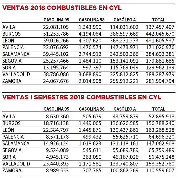 El año pasado se vendieron en la comunidad de Castilla y León 2.546 millones de litros, y en los seis primeros meses la cifra fue de 971.146.107.