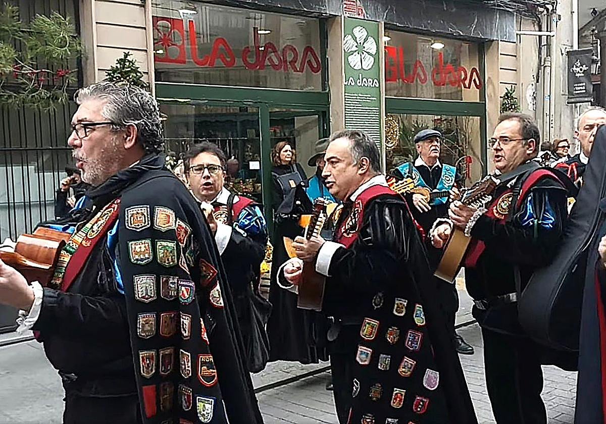 La tuna ronda a la Virgen de la Vera Cruz durante un certamen celebrado en Valladolid