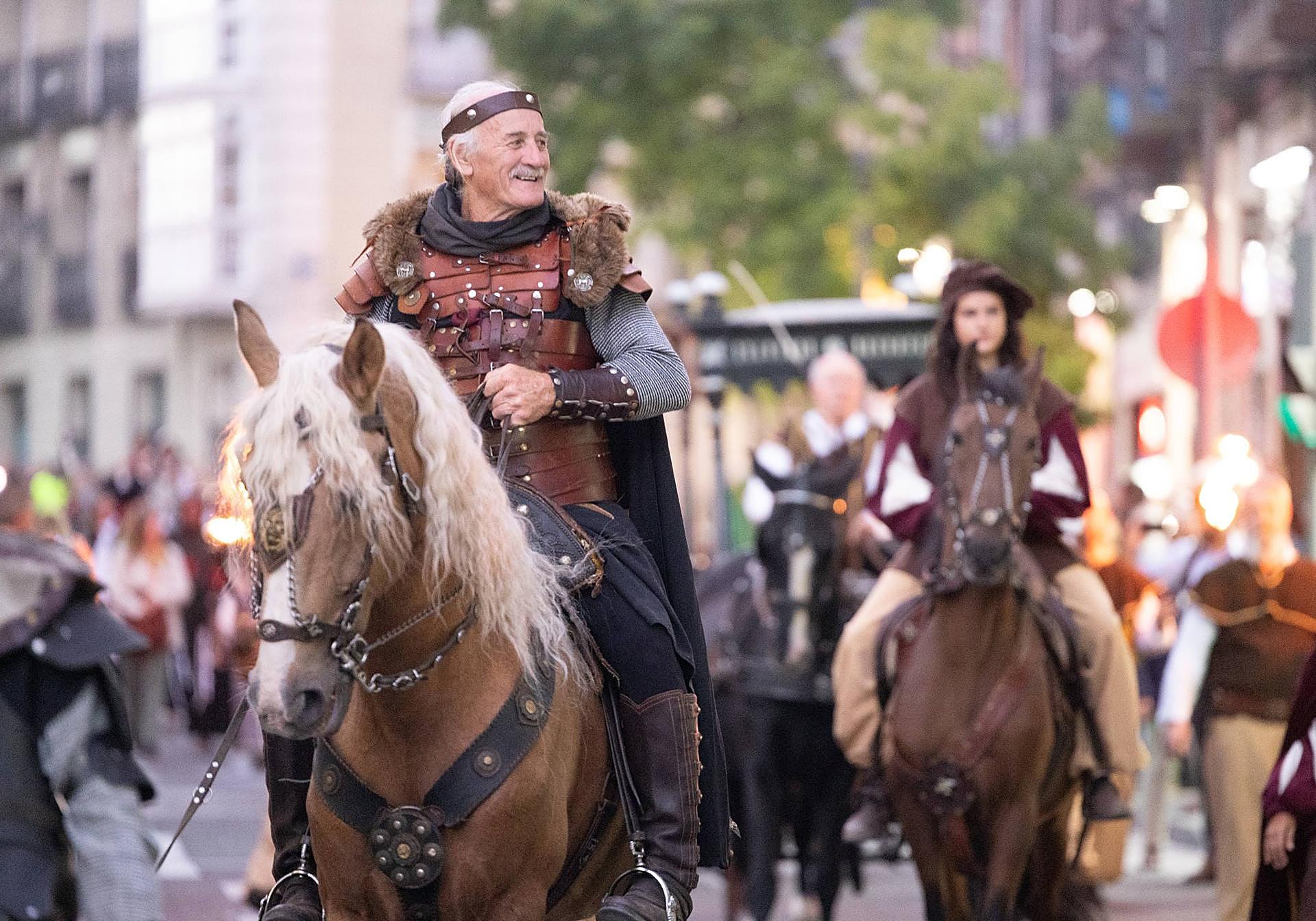 En el atardecer de este viernes, un veterano del ejército irlandés abría el cortejo fúnebre al son de la gaita. Tras él, una docena de caballistas, monjes franciscanos, cortesanas, taberneras, soldados de la guardia real y la guardia montada y una veintena de músicos de la banda Nivaria, de la Casa de Galicia en Valladolid amenizando el desfile. No faltaron abanderados, veteranos de los ejércitos español e irlandés con su uniforme de gala. Tampoco antorcheros escoltando el carruaje tirado por dos caballos con un féretro cubierto por dos antiguas banderas de ambos países.