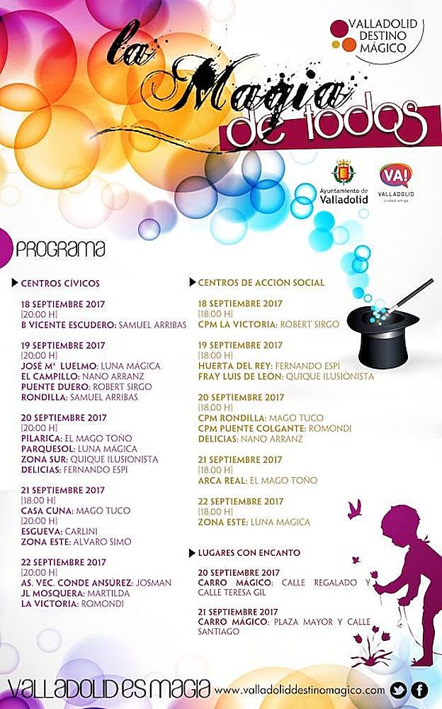 Antes de llegar al punto álgido de la programación con el Gran Premio ‘Oráculo de Oro’, el festival de magia de Valladolid propone a los vallisoletanos y a sus visitantes tres días intensos de actuaciones a través de la programación ‘Valladolid, Ciudad Mágica’.
