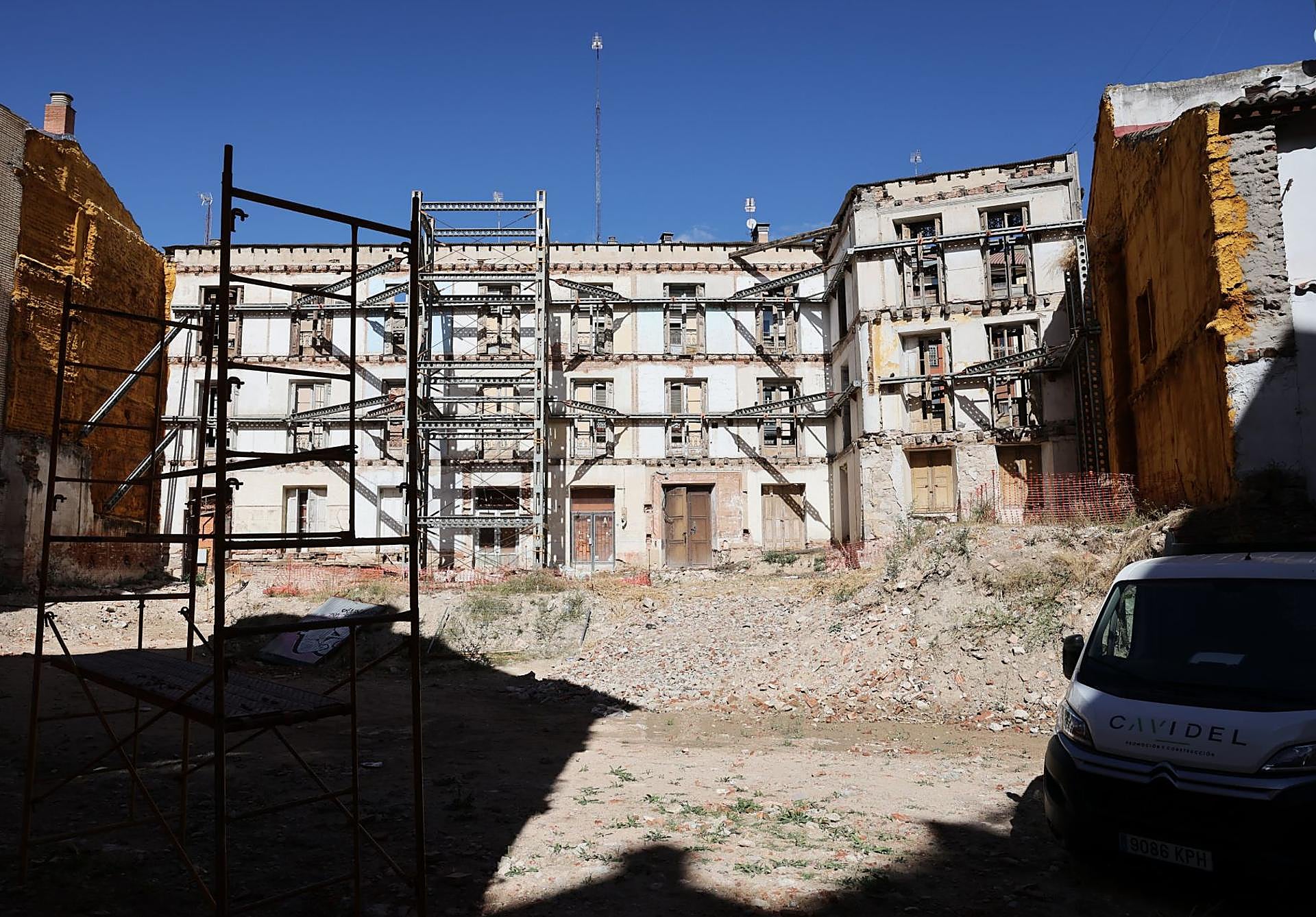 Y a ochenta metros calle abajo, frente a la entrada de la iglesia de San Martín, en los números 4 y 6, un edificio construido en el siglo XIX y que albergó a sus últimos vecinos en 2007, los obreros han comenzado a trabajar en su interior, vaciado años atrás, ya que en este caso la catalogación de este inmueble se ceñía a sus fachadas de San Martín y Moros, con vistas a la entrega de sus viviendas (ya en comercialización) en un plazo de dos años.