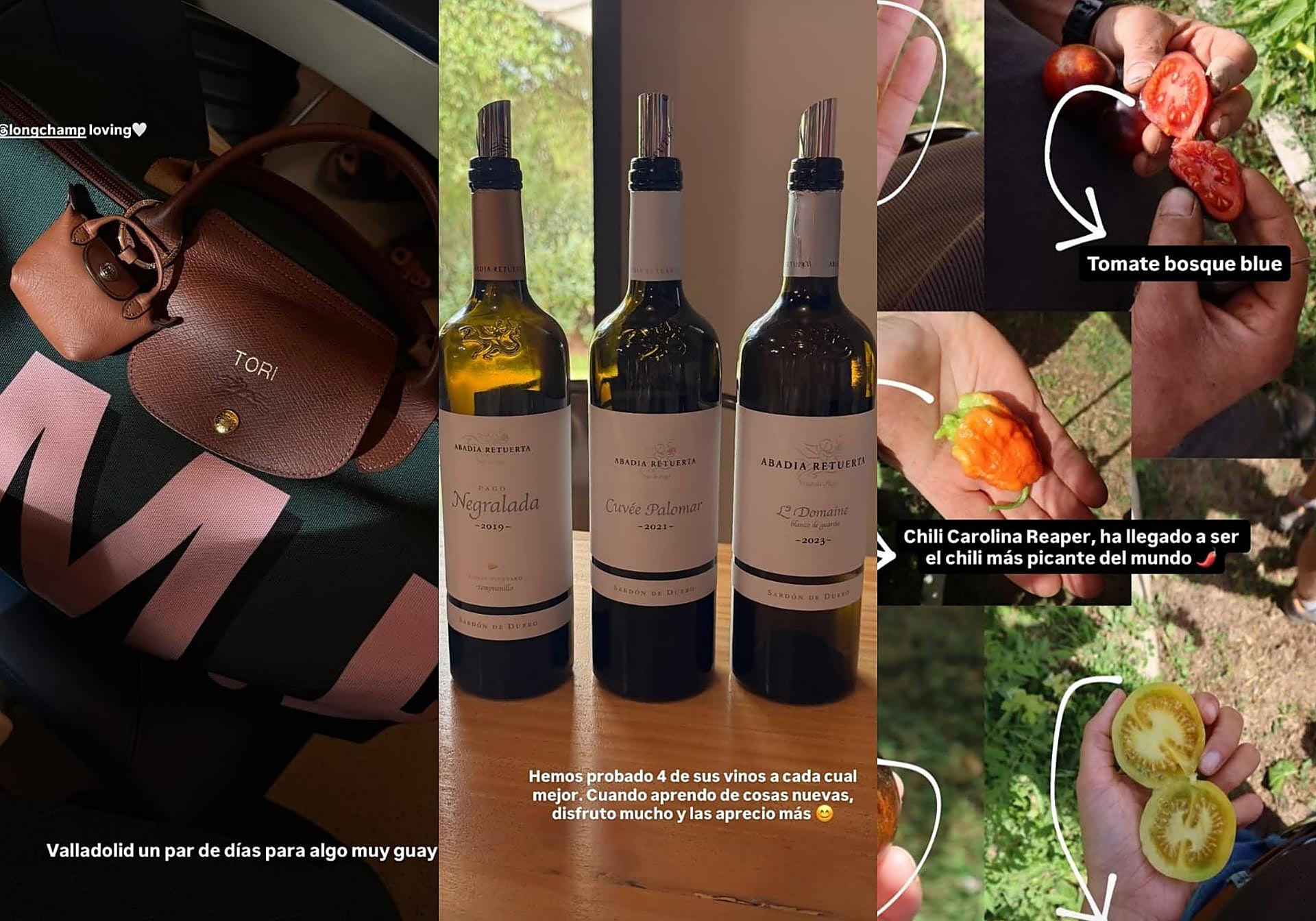 Ya en la inmensa sala de barrica de Abadía Retuerta, la joven 'influencer' ha recorrido las bodegas para disfrutar de cuatro de sus vinos «a cada cuál mejor», puntualizaba junto a una foto con cuatro botellas- Valdebellón, Negralada, Curvée Palomar y L´ Domaine, de las añadas de 2020, 2019, 2021 y 2023 respectivamente.