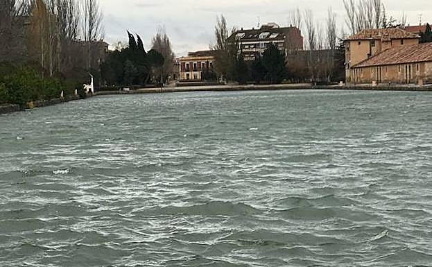 El temporal también está provocando olas en el agua del propio Canal en Medina de Rioseco