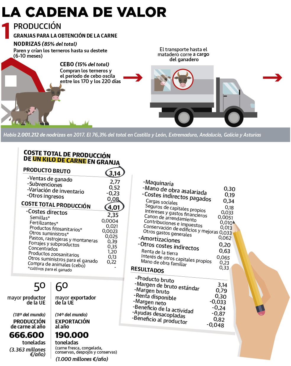 Entre la cría de terneros en dos tipos de granjas y la venta de filetes en tienda hay todo un mundo ajeno al consumidor medio, que no siempre es consciente de lo que de verdad cuesta producir carne de vacuno en España