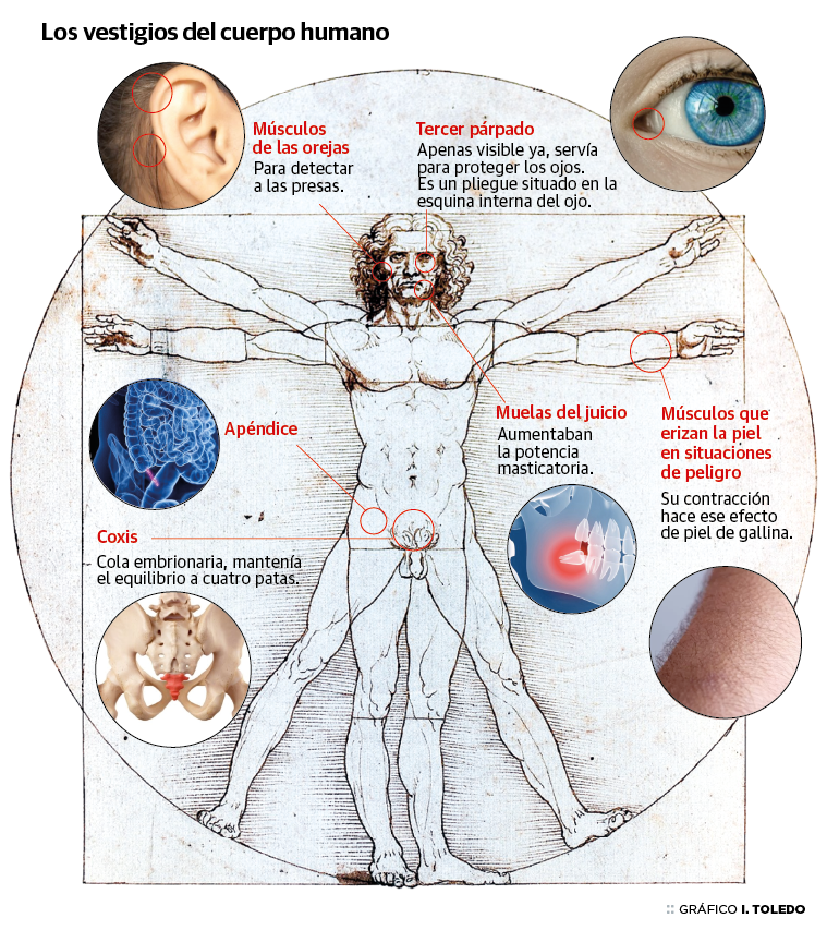 ¿Puede mover las orejas? Pues sepa que es una habilidad rara. E inútil. Ya no le servirá para nada, solo para hacer unas risas ... con los amigos. Esa capacidad la tenían a pleno rendimiento nuestros ancestros, hace millones de años, y era vital para detectar las presas cuando salían a cazar o alertarles de los depredadores. Como ese músculo que permite la movilidad de las orejas, hay otras partes del cuerpo que el ser humano conserva –no todas las personas– y han perdido su utilidad con el paso del tiempo.