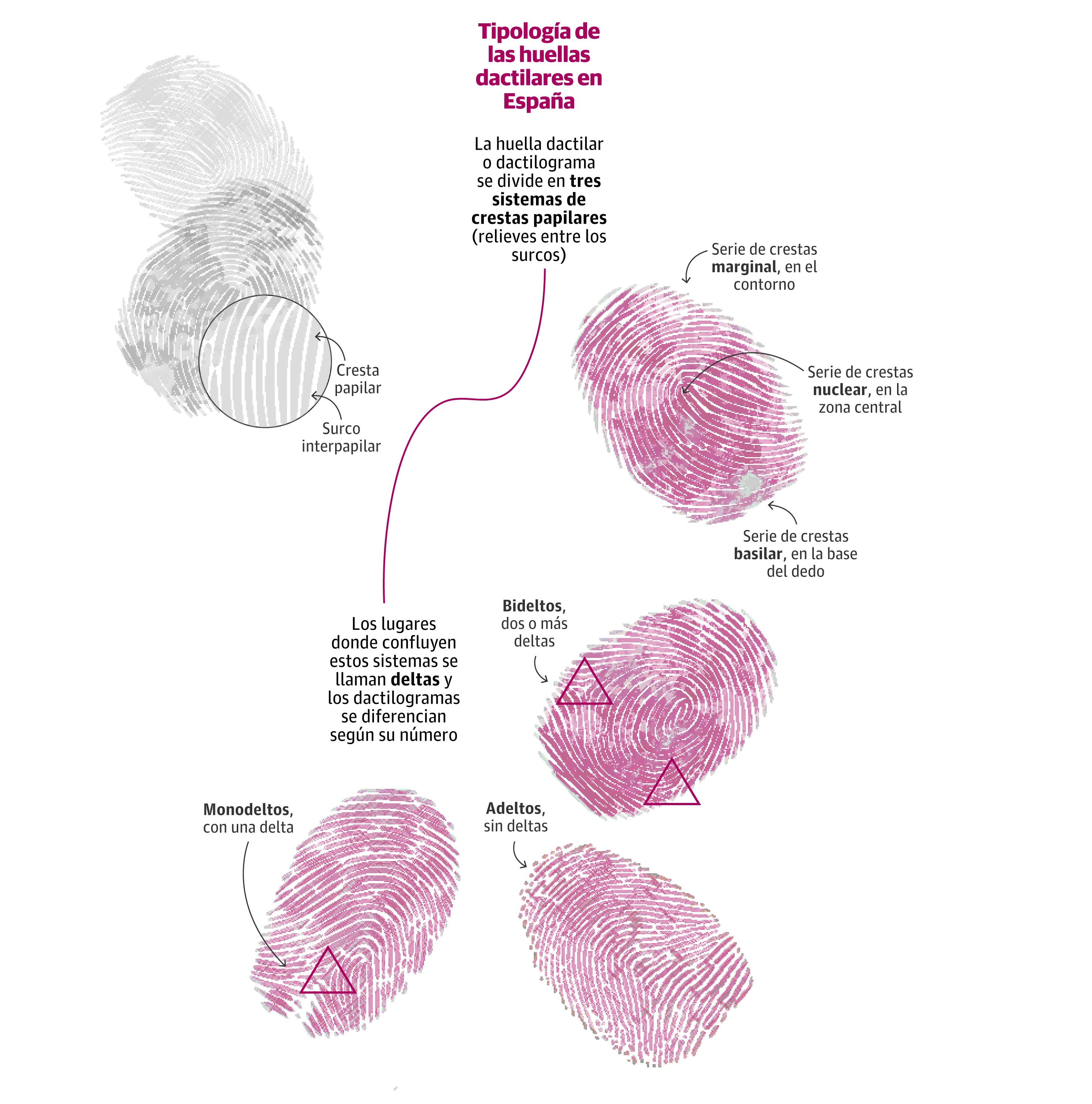 «A través de las crestas papilares, se abren paso las glándulas sudoríparas. El sudor humedece las crestas papilares y da lugar a la impresión de la huella dactilar en un soporte determinado cuando lo tocamos», explica Javier Martín, director del Laboratorio Pericial Forense.