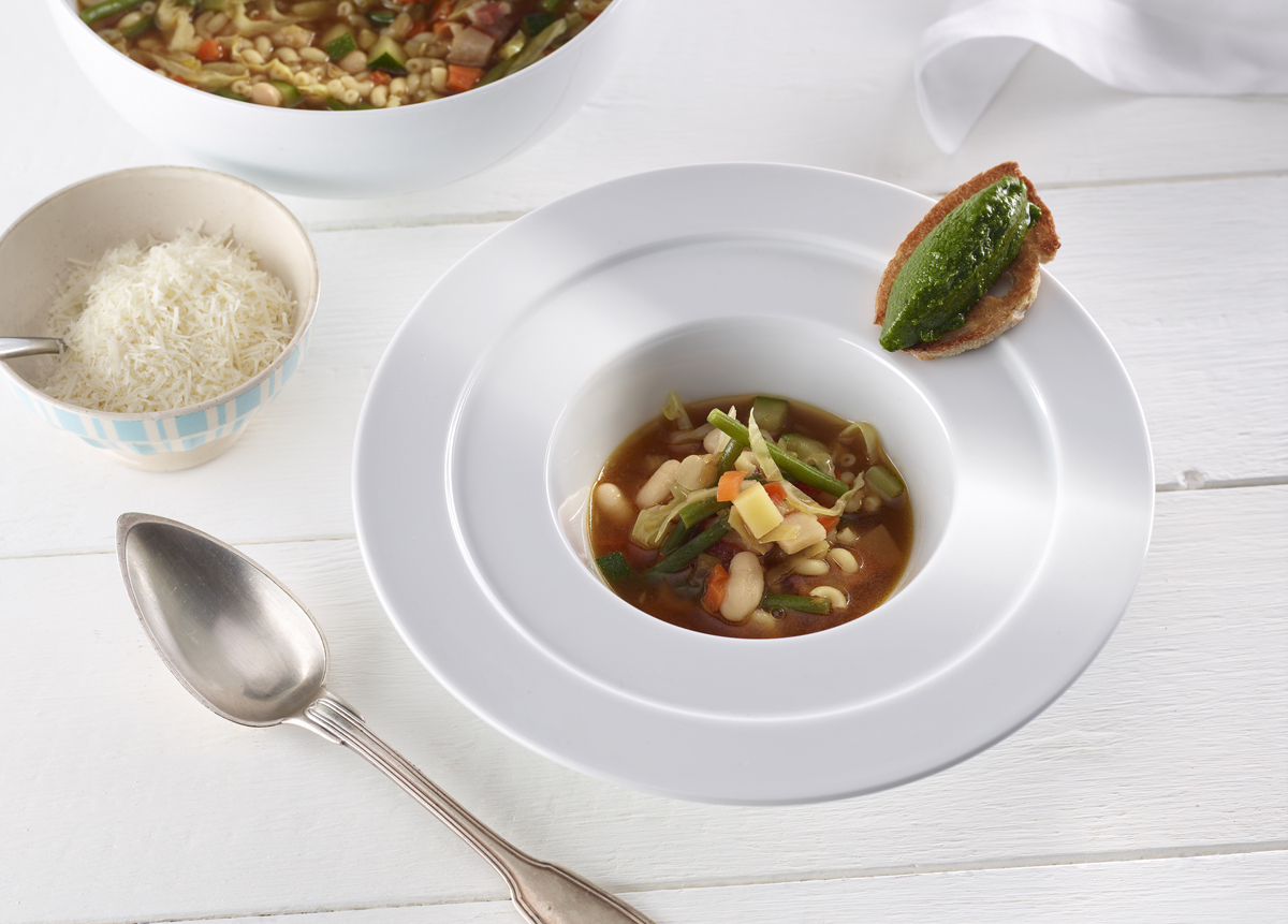 3. Pasado el tiempo, rectificamos la sazón e incorporamos la pasta, las judías troceadas menudas, la col y el calabacín, hirviendo el conjunto unos 8 minutos más. Volvemos a probar la sopa antes de llevarla hasta la mesa.